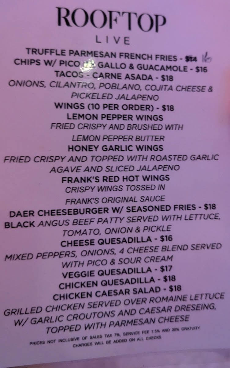 Welcome to Rooftop Live, a culinary gem nestled in the heart of Hollywood, FL. This vibrant venue combines breathtaking views with an eclectic menu that promises to tantalize your taste buds. The menu features crowd-pleasers such as Truffle Parmesan French Fries and savory Carne Asada Tacos, each dish designed to elevate your dining experience under the stars.
